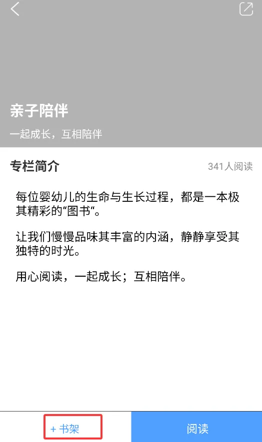 进入绘本详情页后,你可以选择“加入书架”进行收藏,也可以直接点击“开始阅读”。