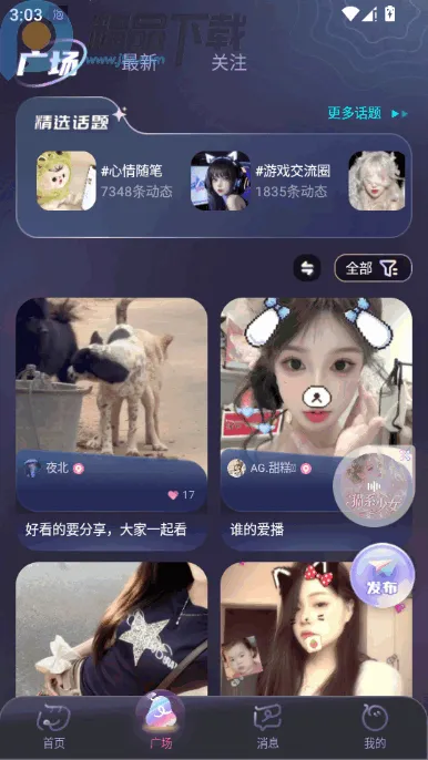 3. 广场话题很丰富,多元讨论能结识同好,分享趣事,倾诉心声,找到志同道合伙伴。
