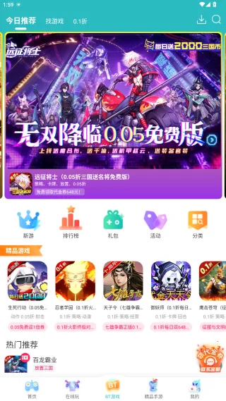 2、在精品手游页面中有热游推荐,还可以了解精品大作等信息;
