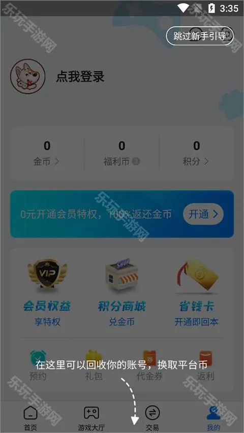 2、不想玩的账号可以在个人中心进行回收来换取平台金币就可以玩游戏
