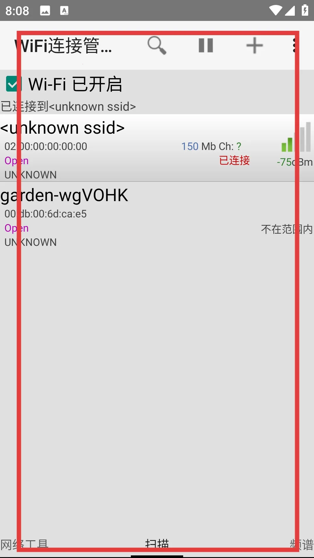 3、完成权限授予后即可进入WiFi连接管理器的主界面,在这里能看到WiFi开启状态,以及已连接和可连接的WiFi列表,实现对WiFi网络的有效管控。