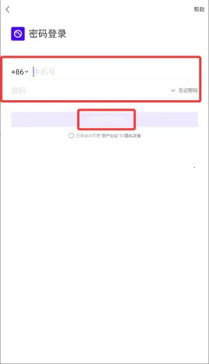 4、输入已注册的手机号码与对应密码信息,点击登录按钮完成账户验证。