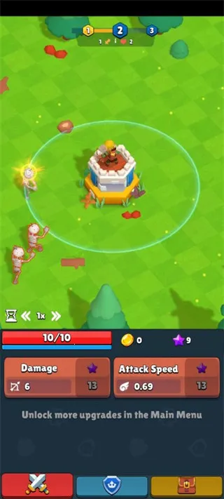 进入游戏后,点击play即可开启冒险。你要不断击败邪恶怪物,升级弓箭手的攻击伤害来应对更强的敌人。随着关卡推进,怪物增多,升级塔的血量和防御力以抵御攻击。升级获取资源数量,击败怪物就能获得更多资源。觉得游戏速度慢,还能增加倍速。每到一定关卡会有强大boss挑战,多种场景主题等你体验,带来不一样的射击乐趣。通过这些玩法,你能充分发挥策略能力,享受保卫王国的成就感,快来加入成为优秀的弓箭手吧!