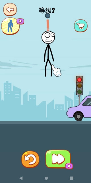 3.在第二个关卡中,玩家则可以利用下方来往的车辆来撞击火柴人达到消灭它的目的。