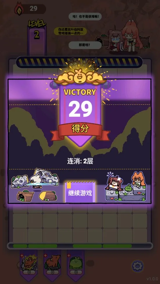 2、消除玩法增添乐趣与挑战,叠加道具提升战斗力,消灭怪兽获取奖励,还有随机技能自由搭配。
