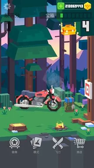 一般而言,靶子离的远的时候以握住刀柄为宜,这样拔出后的刀具移动地更慢、整体在空中旋转的角度也会更小;而靶子离得远时则以握住刀身为宜。在完成十次连续民众后就能开启位于树上的宝箱、获得大量金币,所以想要开启更多新的刀具的话,打靶模式就是刷金币的最佳场所。
