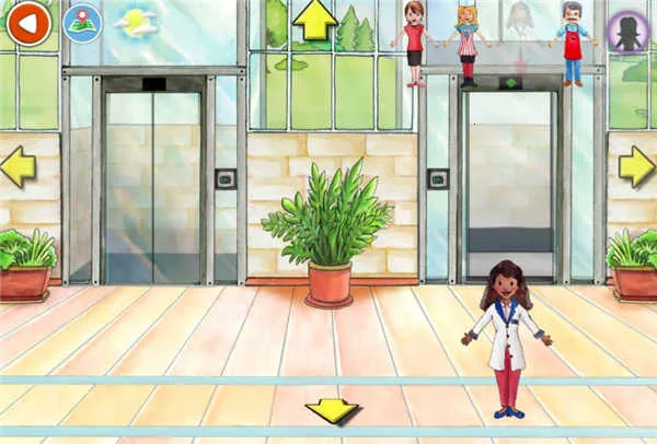 场景内几乎所有物体均可点击互动:例如点击电梯按钮等待开门,拖拽角色进入轿厢,稍作停留即可自动抵达二楼,过程自然流畅。
